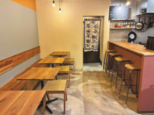 日本の米になじむスパイスカレーとスペシャルティコーヒー、全国のクラフトビール、自家製ソーセージなどおつまみをラインアップ。夫婦がこれまでつないできた“食”を集めたお店です。スパイス香るカレーは、地元農家の野菜と、ご主人の熊本の実家で育てた米を使用。ある日はカルダモンレモンチキン、カキと柿のトマトココナッツ、フェンネルキーマの3種。ランチは1種1100円、2種1300円、3種1400円で副菜付き。国産豚のうま味が詰まった自家製ソーセージはあらびきタイプで、ランチタイムには「ホットドッグプレート」(1300円)で味わえます。クラフトビールは6タップをそろえ、順次入れ替え。米焼酎や黒糖焼酎、国産ジンなど、こだわりの一杯も。おいしい出合いを求めて、ふらりと立ち寄りたくなる場所です。