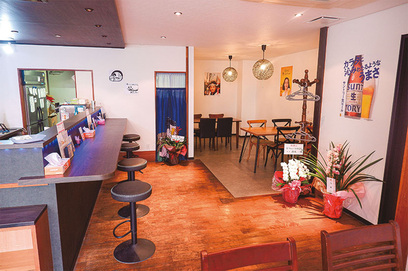 エビフライ、から揚げ、ハンバーグ、ローストビーフ…、みんなの“あったらうれしい”を盛り込んだ「Cランチ」(写真、990円)や、カニクリームコロッケ、アジフライ、から揚げがセットになった「ミックスフライランチ」(880円)など、関西出身店主のサービス精神がさく裂したメニュー群。ランチはスープ付きでご飯もお代わり自由とあって、ボリュームとコスパが抜群。「驚く人も多いけど、お得に感じてほしい、喜んでほしいという“おまけ文化”は、地元では当たり前だったので…」とサラリと話します。土曜もランチを利用できる点も高ポイント。このほか「オムライスデミ」や「鉄板ナポリタン」(各800円)といった喫茶メニューもあり、今後は「レディースセット」も登場予定。夜は居酒屋に変身。豊富な飲食経験から生み出される和洋の多彩なメニューを堪能して。