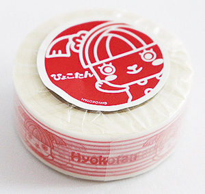 商店街のマスコット「ひょこたん」のマスキングテープや缶バッジなどのグッズと、おみくじ入り。