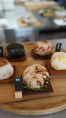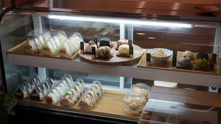 栄養士でもあるオーナーが鴨部(かべ)産の米ともち麦で結ぶ日替わりおむすび(1個150円〜)は栄養たっぷり、具材もたっぷり。不定期のマルシェ出店で人気のかべっこがアンテナショップを構え、会いに行けるように。おむすび弁当(800円)や、おはぎ(3個500円)、もち麦入りでプチプチ食感の「わらびもち」(300円)もあり。