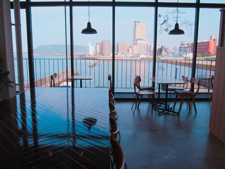 老舗コーヒーメーカーが自信を持って提供するのは、0℃以下の氷温で一定保存され、長時間焙(ばい)煎で丁寧にネルドリップされた「氷温熟成珈琲」(380円~)。まろやかでスッキリとした後味のコーヒーを、パスタやオムライスなどのランチセット(サラダ・ドリンク付き950円~)や「スフレパンケーキ」(550円)などのスイーツと一緒に楽しんで。海風が心地よい人気のテラス席は愛犬同伴もOK。