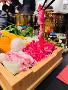 “一人一鍋”スタイルで、白菜(286円~)、国産豚バラ肉(968円)、火鍋もち(209円)など、30種類以上の具材、タレ・調味料を自由に組み合わせOK。ベースの鍋スープ(385円)は美容と健康を意識した紅油麻辣鍋、白湯美容薬膳鍋、トマト鍋など4種から選べ、追いスープは無料なのもうれしいポイント。迷ったら「PANDA火鍋ランチセット」(デザート付き、1880円)がおすすめ。