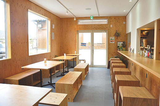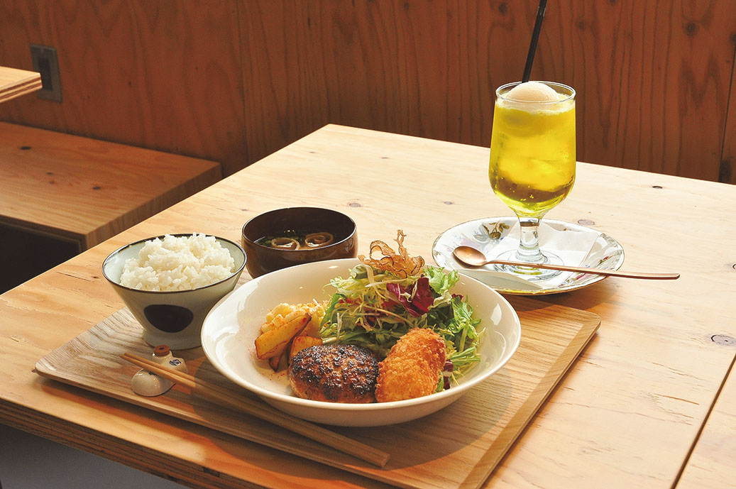 夫婦で始めたキッチンカーから、念願の実店舗に。木のぬくもりあふれる空間は、田園風景を望む大きな窓と快適な家具で居心地抜群。「もち豚ハンバーグ(100g)&フライ定食」(1350円~)など定食7種と自家製スープの優しいラーメン(900円〜)、「喫茶店のクリームソーダ」(600円)などを用意。みそ汁はだしから引くなど、細部まで丁寧な仕事がうかがえます。弁当のテイクアウトも予定。